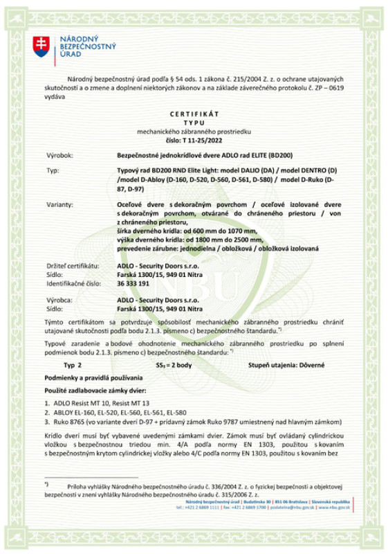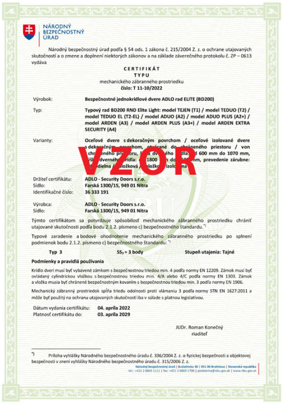 ADLO Bezpečnostné dvere rad Elite, Prísne Tajné