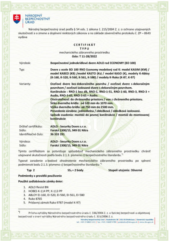 ADLO Bezpečnostné dvere rad Economy, Kasim, Dôverné, 2.strana