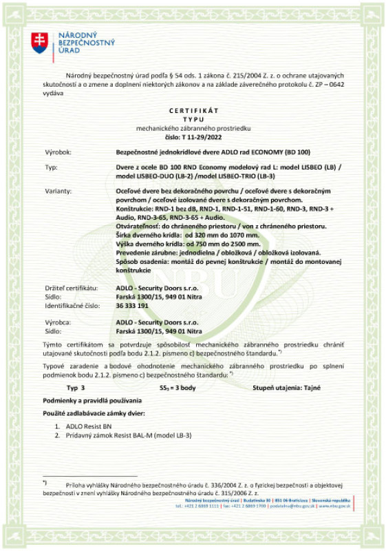 ADLO Bezpečnostné dvere rad Economy, Lisbeo, Tajné, 1.strana