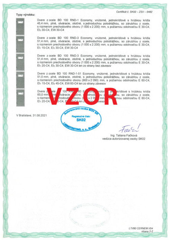 Protipožiarnosť pre ADLO dvere BD 100 RND Economy, 2. strana