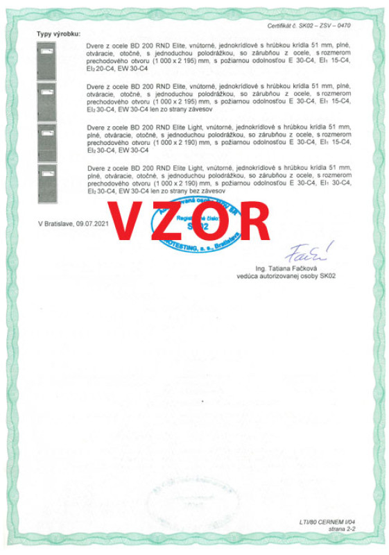 Protipožiarnosť pre ADLO dvere BD 200 RND Elite a Elite Light, 2. strana