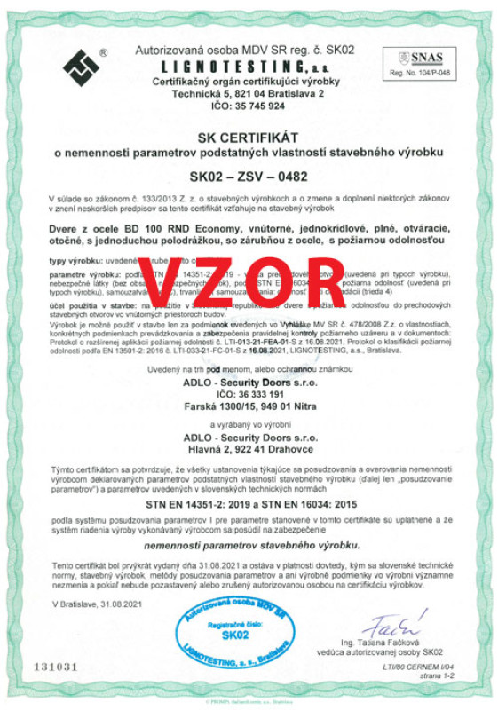 Protipožiarnosť pre ADLO dvere BD 100 RND Economy, 1. strana