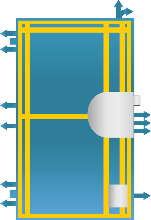- Dvojnásobné tesnenie po celom obvode dverí chráni v zimných mesiacoch vnikaním chladného vzduchu dnu a úniku tepla von, v letných mesiacoch opačne.