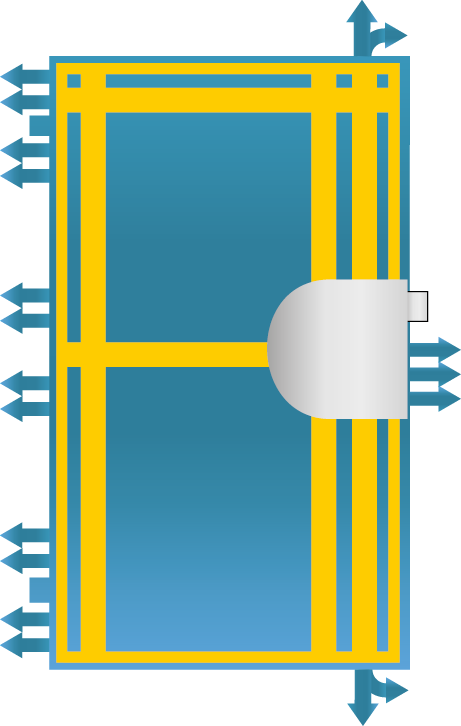 - Dvojnásobné tesnenie po celom obvode dverí chráni v zimných mesiacoch vnikaním chladného vzduchu dnu a úniku tepla von, v letných mesiacoch opačne.