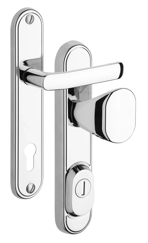 Bezpečnostné kovanie Rostex R1 Dekor, Oblé, Chróm Nerez lesklý, Kľučka - Madlo oválne