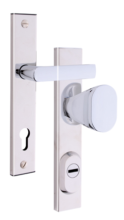Bezpečnostné kovanie Rostex R1, Hranaté, Chróm Nerez lesklý, Kľučka - Madlo oválne
