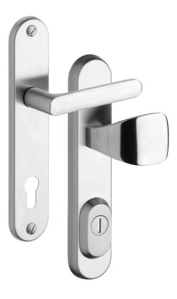 Bezpečnostné kovanie Rostex R1, Oblé, Nerez matný, Exclusive, Kľučka - Madlo hranaté