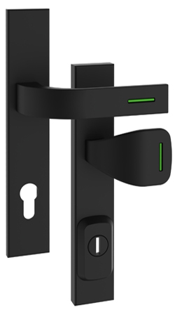 Bezpečnostné kovanie Rostex RN1 Fondi, Hranaté, Čierna matná, Lumino zelené, Kľučka - Madlo hranaté