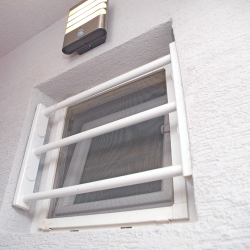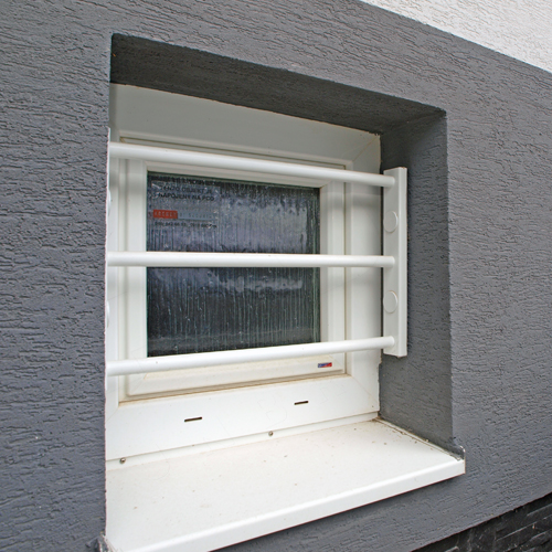 - Ochrana voči prepíleniu. Dvojité masívne oceľové tyče. Každý masívny oceľový prút je zdvojený, pričom vnútorná tyč je otočná, čo znemožňuje jej prepílenie.