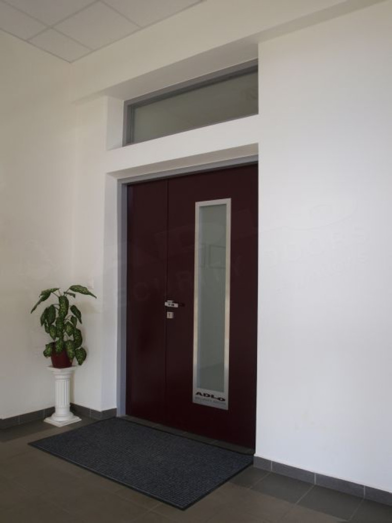 ADLO - Bezpečnostné dvere ADUO, Presklené dvojkrídlové, s nad- svetlíkom, zvnútra